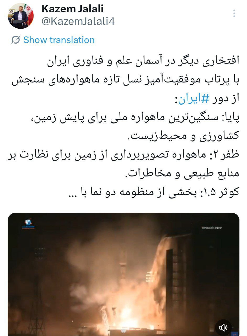 توییت سفیر ج.ا.ایران در روسیه به مناسبت پرتاب موفقیت‌آمیز سه ماهواره ایرانی