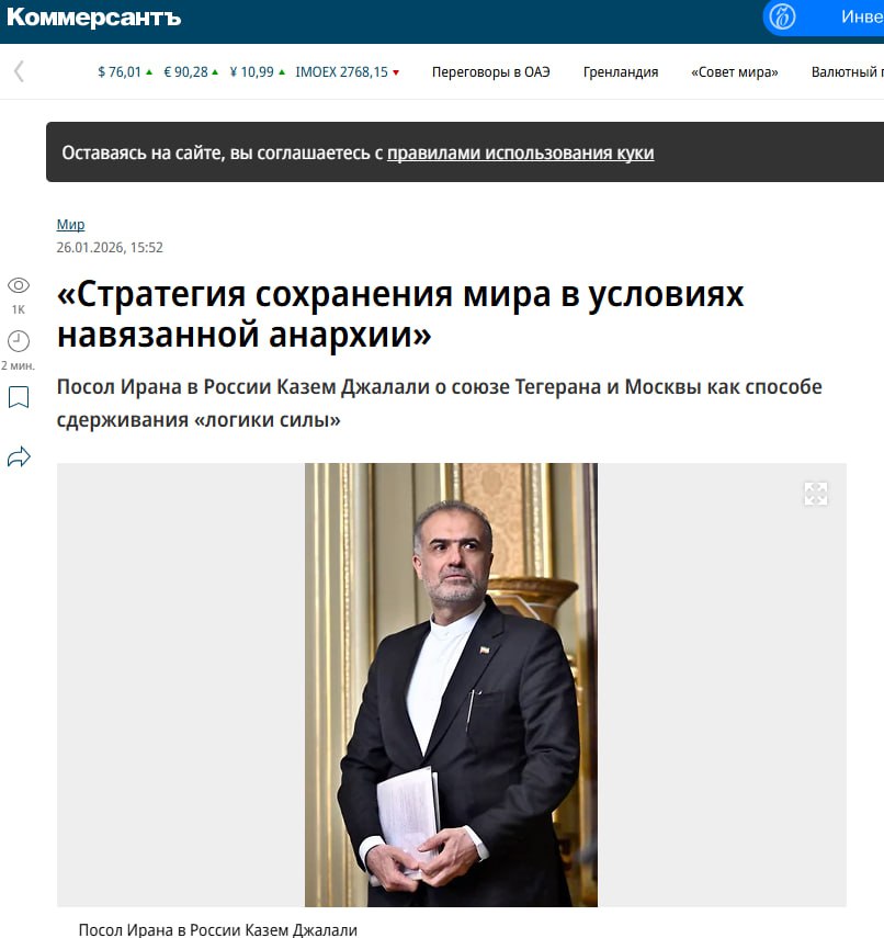 یادداشت کاظم جلالی، سفیر ایران در روزنامه کامرسانت روسیه