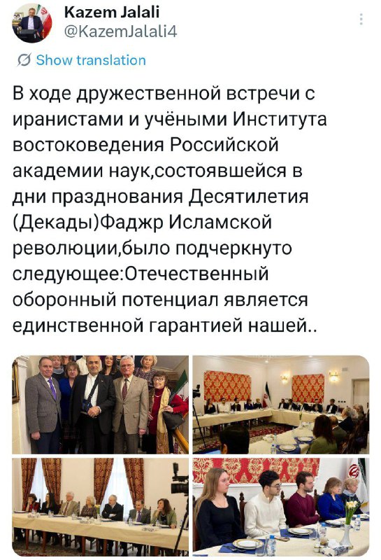 رشته توییت سفیر ج.ا.ایران در روسیه پس از نشست با ایرانشناسان روسی