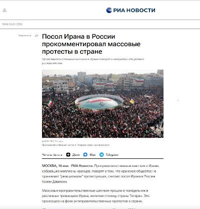 Посол Ирана в России прокомментировал массовые протесты в стране